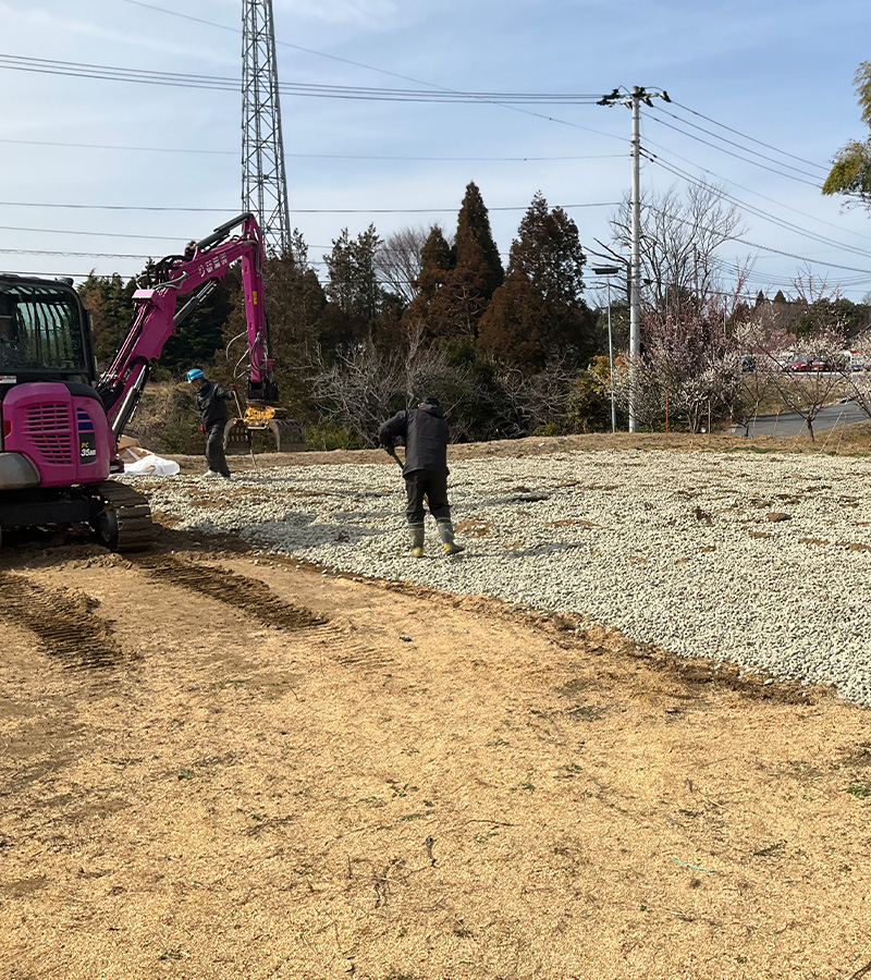生まれる軽量資材で、防犯砂利や盛土、緑化など幅広い用途に活用されています。